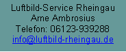 Der Luftbildservice Rheingau gibt seine Geschäfttätigkeit zum 31.10.2015 auf und bedankt sich bei allen Interessenten, Kunden, Freunden und Gönnern.